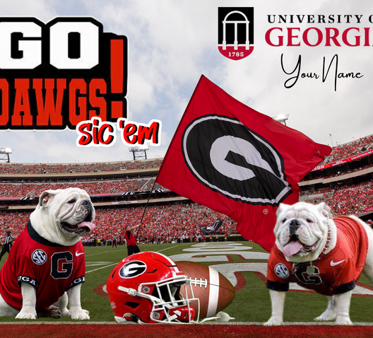 To select this design template, please add the Design ID: "DAWGS" to the remarks Product section in your shopping cart. If you'd like to add a photo, name, or any custom text to your design, include that information along with the Design ID.